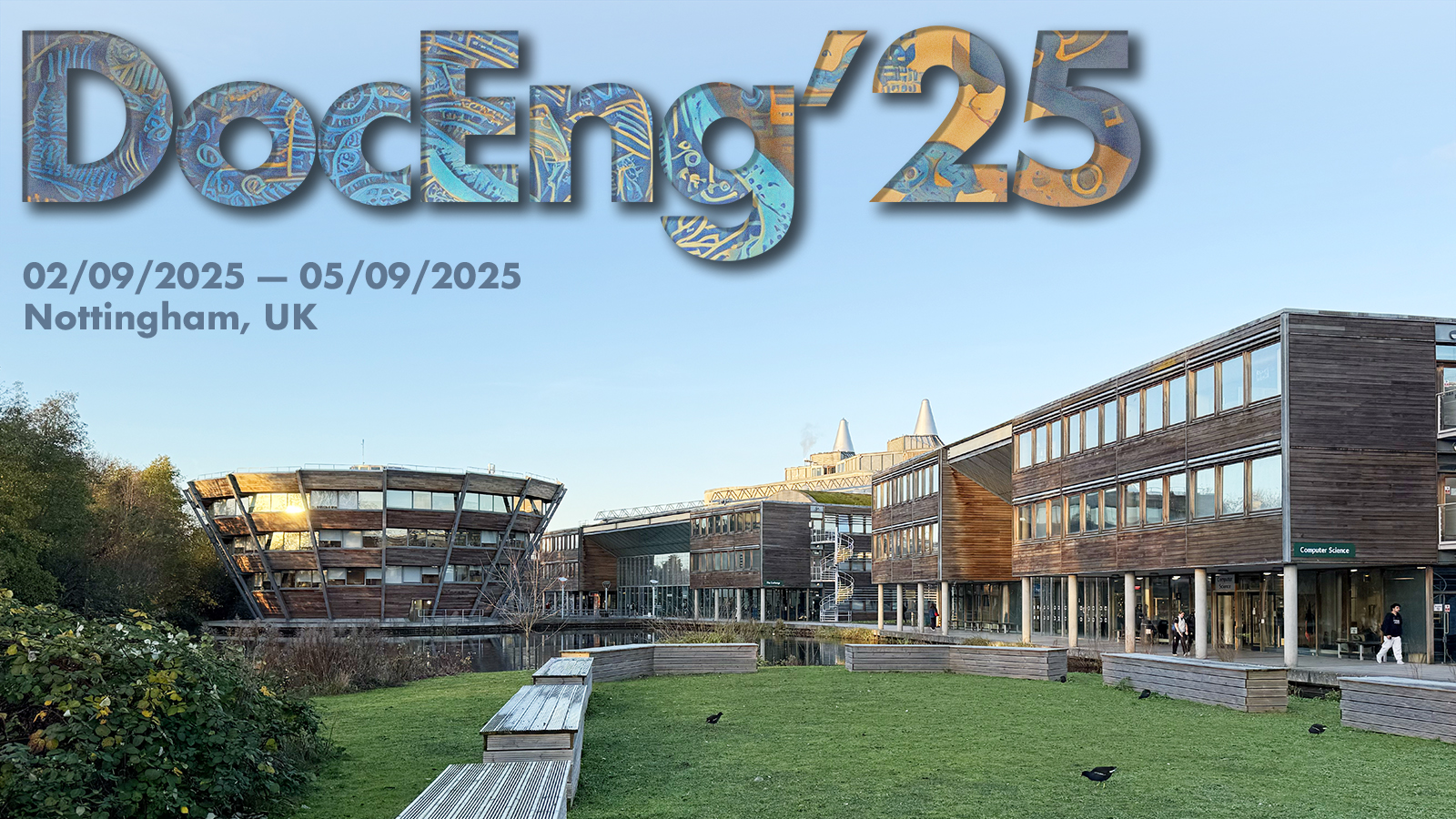 DocEng 2025 is hosted at the School of Computer Science on the University of Nottingham's Jubilee Campus. The campus is easily reached from Nottingham city centre by bus (serviced by stops at either end of the campus) or via tram (via a short walk from the Queen's Medical Centre stop on the Toton Lane — Hucknall line), and the city centre has several hotels where you may wish to stay, some suggestions are listed below.
